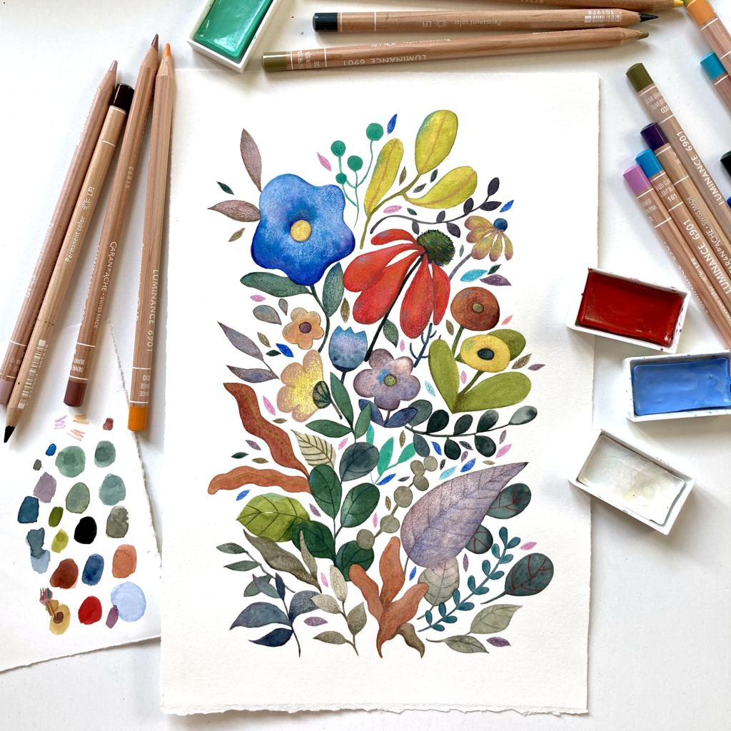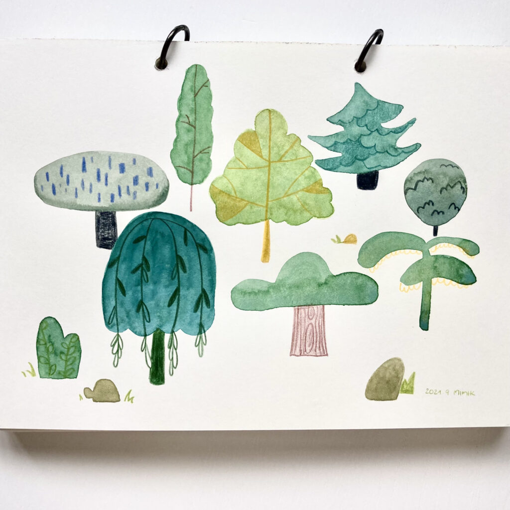 Her illustration work depicts nature, more specifically, plants, trees, flowers, animals, and more.